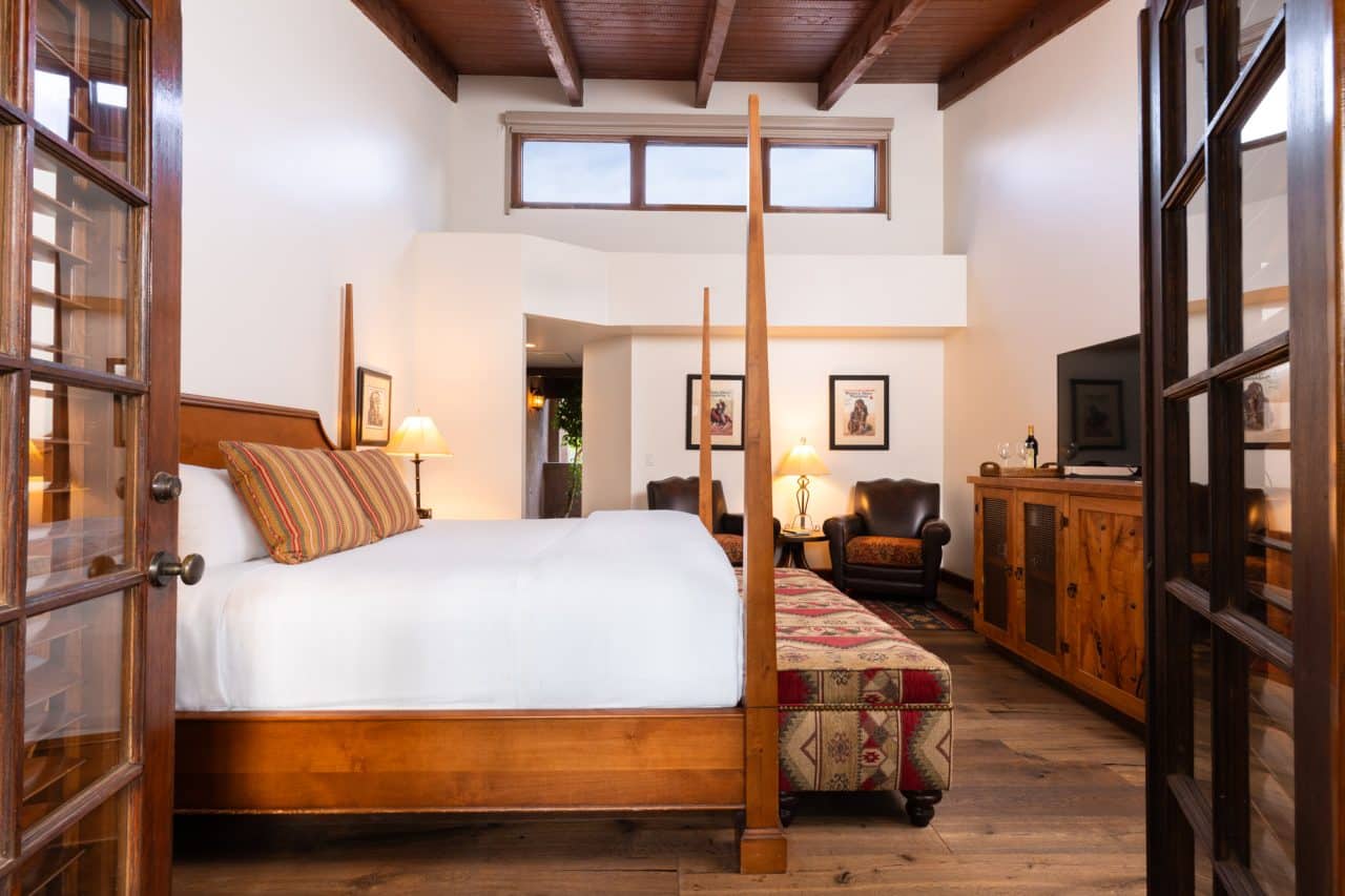 700 Sq. Ft.Your deluxe and spacious suite, ranging from 600 to 700 square feet, is ideal for special occasions or simply for ultimate relaxation. Each deluxe casita features a king bed, oversized bathrooms with walk-in showers and antique pedestal tubs, vaulted ceilings, a fireplace, patio, and a dining table.
