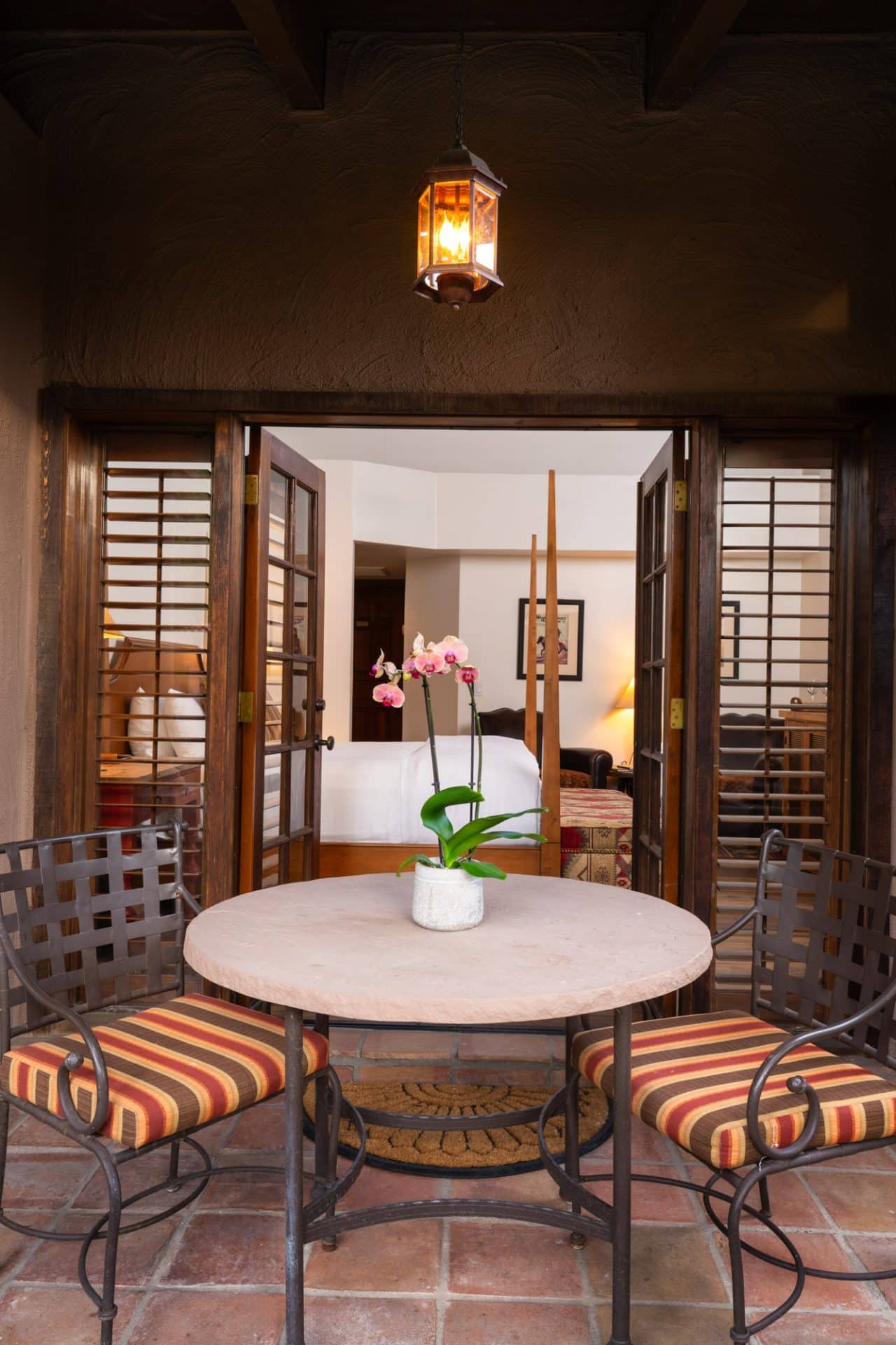 1,100 Sq. Ft.The Hacienda is a spacious two-bedroom suite, perfect for small families, featuring two king beds and private patios that overlook the serene garden. A peaceful retreat with ample space and comfort, it’s an ideal choice for those seeking luxury and tranquility. Located directly near the private hot tub. Call to reserve this exclusive room 844-267-8738. Cannot be booked online.